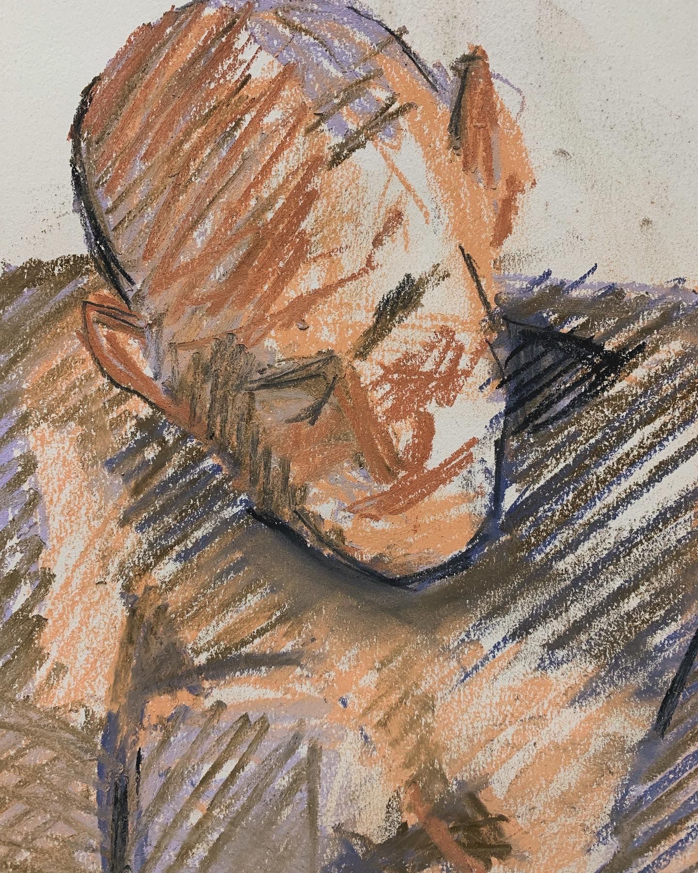 Most of the time I use charcoal or colour pastels (or both) and occasionally brushes with colour inks. Currently I prefer using colour pastels because they are very portable and easily accessible to create a painterly and expressive image.